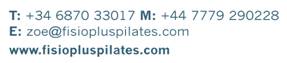 687 033 017 zoe@FisioPlusPilates.com Fisio Plus Pilates.com |